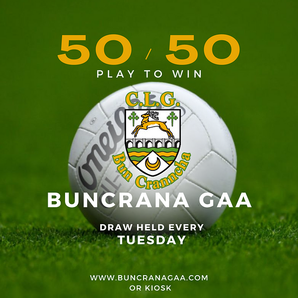 Just a reminder that our Buncrana GAA 50:50 Draw is running every week and has become one of the most important fundraisers for the club ππ.